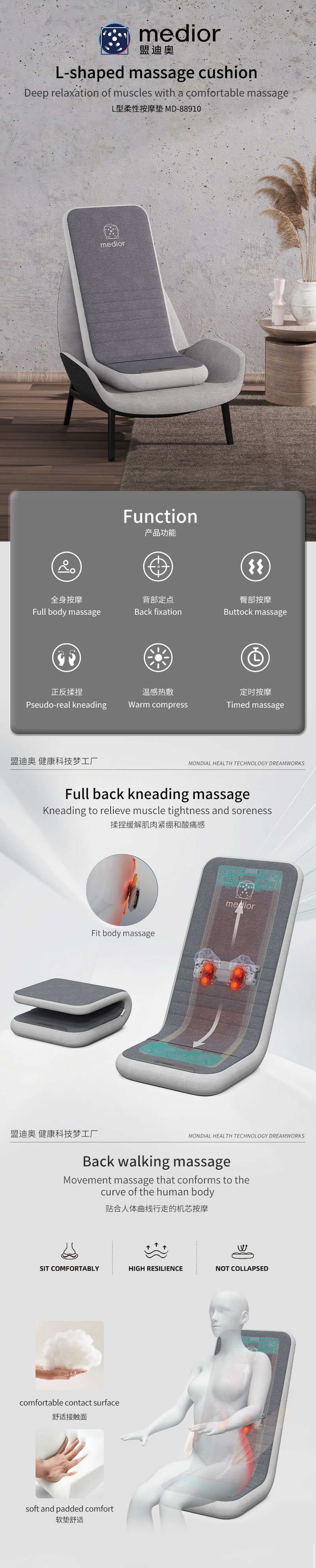 1、L型機(jī)芯結(jié)構(gòu),對(duì)折包裝縮小體積2、獨(dú)家專利柔性機(jī)芯3、力度三檔調(diào)節(jié),定點(diǎn)按摩,腰背按摩、臀腿按摩、全背按摩模式選擇4、背部行走揉捏,按摩區(qū)域加長(zhǎng)到從肩膀到大腿;5、更加貼合不同款式的椅子整體可對(duì)折收納6、亞馬遜標(biāo)準(zhǔn)包裝尺寸