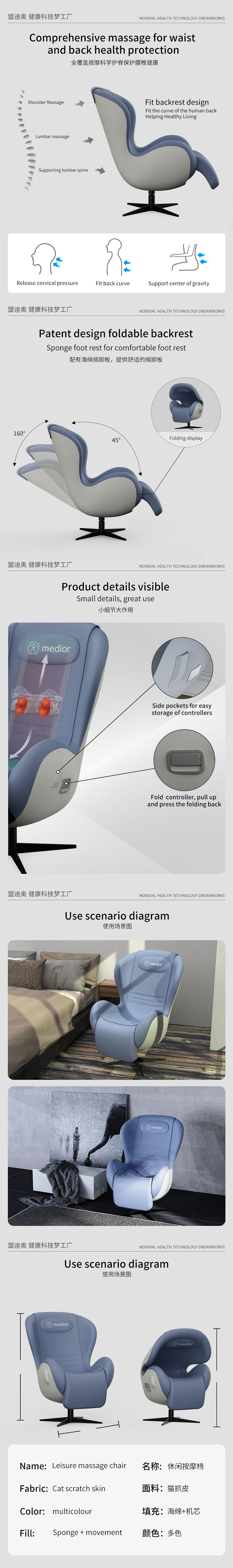 柔性休閑按摩椅 可坐可躺90-160°角度可調節(jié)仿真人揉捏按摩手法舒緩腰背 多功能遙控器一鍵啟動 按摩行程95cm,從肩膀到小腿360°旋轉可拆卸披風 方便清洗 獨家專利柔性機芯 超薄可折疊 包裝體積小