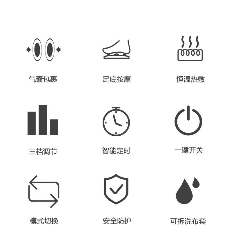 5觸控按鍵(氣囊,模式選擇,開關(guān),氣壓力度,熱敷,);
